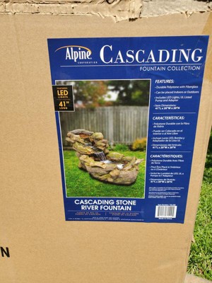 20" Cascading Stone River Fountain with LED Lights Cool White - Alpine Corporation: Indoor/Outdoor Decor, No Assembly Required
