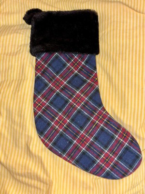 I'm pretty impressed with this Christmas Plaid stocking. It's thr perfect color combination and looks very classy. Sometimes Christmas stockings can be a little gaudy with extra tinsel and bold colors, but this one is subdued without being boring. It has a loop to hang it up on the mantle. It has sufficient space as well within the stocking for any small gifts, candy etc. I love the fur cuff which makes it feel expensive. This is the perfect decor for my decor; very elegant and refined. I would highly recommend this stocking to anyone.