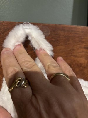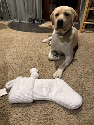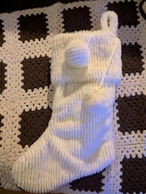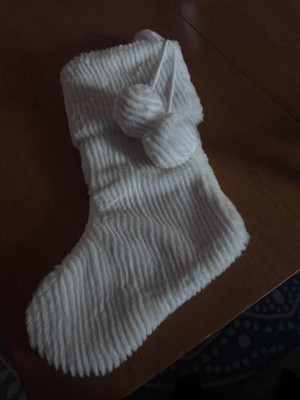 Cozy up your holiday setup with the Christmas Striped Faux-Fur Stocking with Thinner Gauge from Wondershop™. Crafted from plush white faux-fur fabric with pompom accents on the cuff, this Christmas stocking brings classic holiday charm to your space. Its 20-inch size makes it perfect for tucking in small gifts and treats, while the built-in top loop lets you hang it effortlessly above the mantel to delight your family on Christmas morning.