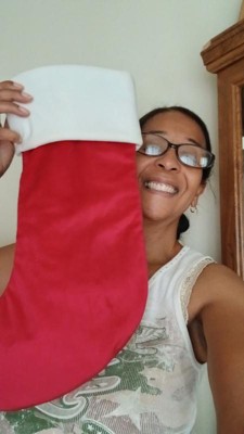 I received this Christmas velvet stocking free for my honest review from heybullseye sampling program the Christmas stocking is 20 inches enough room to put a lot of treats abd goodies for my kiddos.