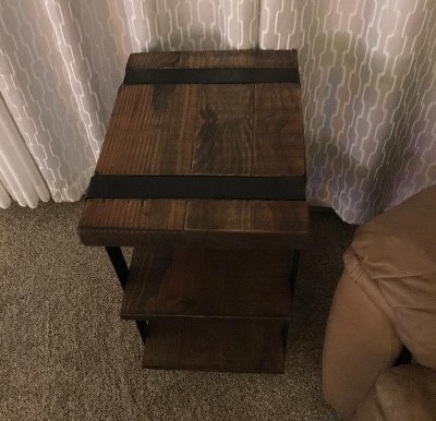 We're so happy with this end table. It's heavy duty, sturdy, and made of real wood. I assembled it by myself and it was super easy. It looks expensive and perfectly coordinates with the rustic/industrial vibe of our home.