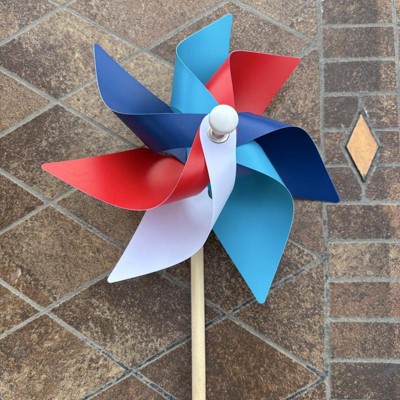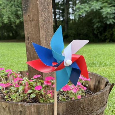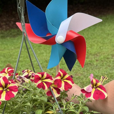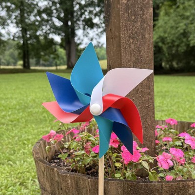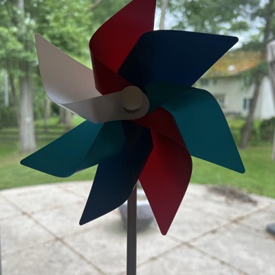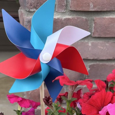 A: The pinwheel features a colorful design that adds vibrancy to any outdoor setting.