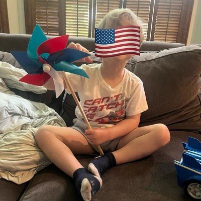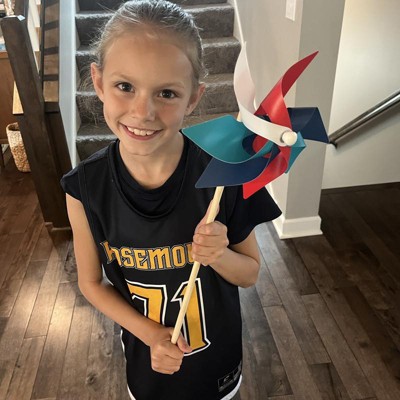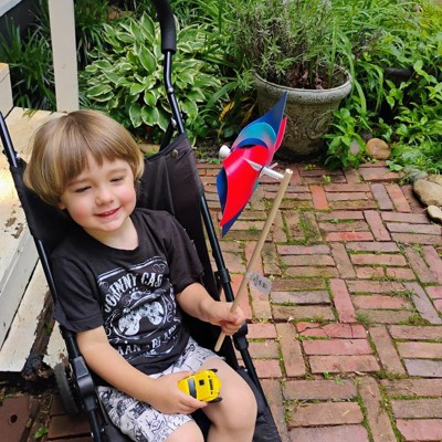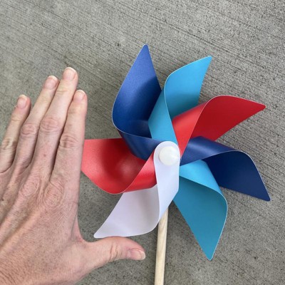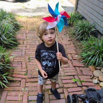 [This review was collected as part of a promotion.] This is the perfect pinwheel for toddler aged kids because it's not too difficult for them to blow it and they can walk with it and have the wind blow it as well. My son really enjoyed watching it spin and it went very fast in the wind, keeping him entertained for quite a while. I love the colors and the patriotic theme so that he can use it at different family functions and maybe parades this summer. I received an incentive to write this review.