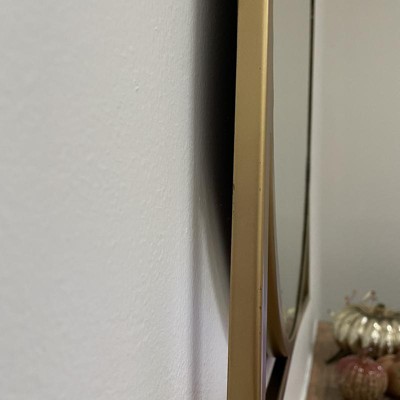 Elevate the look of any room in your home with this Decorative Wall Mirror from Threshold™. Showcasing an oblong shape with angled sides at the bottom, this decorative wall mirror features a thin metal frame in a gold finish for a touch of style. Hang it over your vanity or dresser for functional appeal, or display it in your entryway, living room or above the mantel as an accent piece to decorate your space.