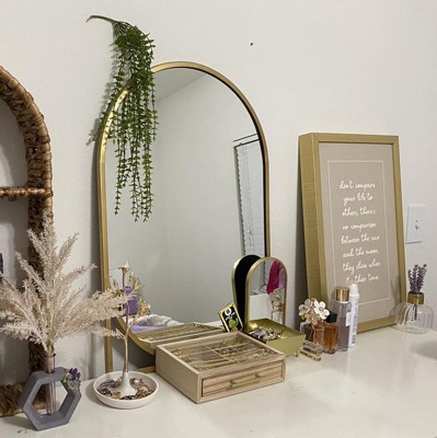 The oblong shape & angled sides add a unique touch that elevates the room. The gold metal frame looks stunning over my dresser. I’ve received so many compliments on it already!