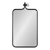 Give your sophisticated home an industrial aesthetic with the Yitro mirror from Kate and Laurel. Inspired by rustic materials updated for the 21st century, the Yitro has a robust metal frame in a rounded rectangular shape. This modern mirror's crowning feature is the ornamental bolt at the top, adding an extra layer of intrigue that pays tribute to industrial design techniques. The Yitro was constructed of sturdy and resilient metal material with a sleek black finish, giving it a beautiful look that fits into various decorative spaces. It's perfect for adding contemporary style to a living room, bedroom, entryway, bathroom, or dining room. This mirror's overall dimensions are 20 inches wide by 35 inches tall, making it a commanding decorative statement or a functional mirror for your vanity. Adding a mirror like the Yitro to your home is fantastic for bringing dimension and vibrancy to any space with its large glass surface area. To hang this beautiful decor piece, use the concealed metal hanger attached to the back of the frame.
