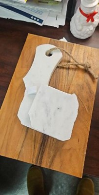 A: The serving board is made of a combination of wood and white marble.