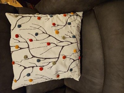 Playful yellow, blue, red, and orange poms have been hand-sewn onto the embroidered branches of this Rizzy Home Ivory Pom Square Throw Pillow Cover. Include this pillow cover in your home or office to lighten your mood and add a textural delight. This sizable, knife edge, solid, zippered back pillow cover will be great as a standalone piece or as the top cover in an arrangement.