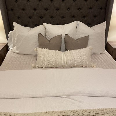 [This review was collected as part of a promotion.] Beautiful fringed linen throw pillow. It is a neutral color, that easily coordinates with our living room. I love the down filling, the pillow is moldable, but keeps it’s shape when fluffed. Overall, easy to clean, comfy, and great looking throw pillow.
