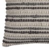 This Rizzy Home textured throw pillow cover offers a stylish, yet functional way to add a modern industrial touch to any home decor. With its unique jacquard woven background and channel woven stripes in a dark charcoal, gray and natural ivory color palette, this 20”x20” pillow cover creates an impression with its small chevron weaving pattern on either side of the stripe. Accent any living space with this stunning pillow cover, designed to bring dimension and subtle sophistication to any interior space.
