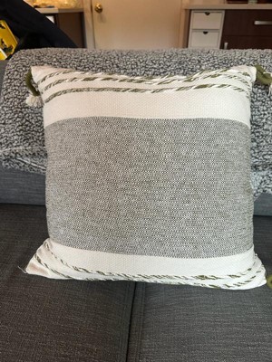 [This review was collected as part of a promotion.] This stylish accent pillow from Rizzy Home is the perfect addition to any living space! It brings cozy, urban farmhouse sophistication with its 100% cotton construction and beautifully woven, knife-edged block stripe design. The moss green and white colorway feels both fresh and timeless, with a two-color woven center panel that adds great dimension. The details are what really make this pillow stand out — the hand-tied looped tassels and twisted yarn roping add incredible texture and charm. The hidden zipper closure keeps it looking sleek, and the best part is that the cover is removable and washable, making it easy to keep fresh and clean. There is a small natural variation in the weave that gives this pillow a unique, handcrafted character — a little detail that makes it feel even more special. Soft yet supportive with its poly-fill insert, this pillow is perfect for adding a bold, sophisticated touch to any smart home décor. Highly recommend for anyone looking to elevate their space with stylish comfort!