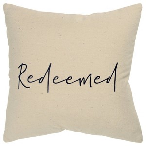This "Redeemed" sentiment pillow cover from Inked by Rizzy Home features a natural cotton canvas base and a neutral black and natural fiber color palette. With its modern industrial design, this 20" x 20" knife-edged pillow cover has a hidden zipper closure for a polished finish. The "Redeemed" text is printed in an almost black shade, making it an ideal statement piece for any room. Its subtle yet powerful messaging adds just the right touch of character to any décor.