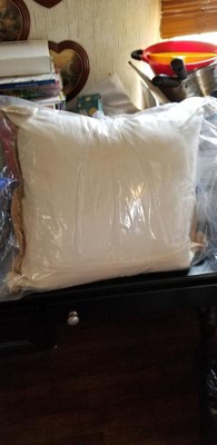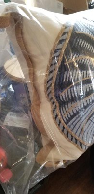 [This review was collected as part of a promotion.] This is a really lovely pillow! It's a good size, I think it's 20". The pillow itself is Filled with down/feathers. It's squishibly (is that even a word, lol?) soft, yet still firm enough for support. It is encased in a plain off white case. The cover is beach themed. A spiral shell in shades of blue with additional embroidered accents in a brown twine. The entire cover is edged in a burlap fabric to complete the beach effect.