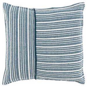 This stylish striped accent pillow from Rizzy Home blends modern chic with an urban farmhouse vibe in classic blue and natural. The 20”x 20” design is made of 100% cotton and features a woven stripe with subtle texture, and a pattern block with an embroidered baby flange separating the two. A solid cotton back with hidden zipper closure makes for easy fill and cleaning. With modern style in a classic summer palette that's easy to mix and mingle with other design styles, textures and influences, this urbane pillow creates a soft style statement to elevate any interior design with sophistication and charm.