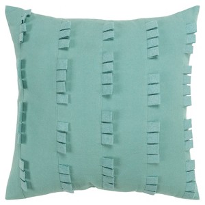 Bring style and flair to your living space with this stunning Donny Osmond Home Collection accent pillow. This stylish accent piece is designed with an edgy, modern chic flair. Constructed of 100% cotton canvas, this pillow measures 20" x 20" with an array of stitched panels. These panels, in a timeless stripe pattern, feature felted tabs that offer a modern indutrial aesthetic with an urbane texture profile. The offset tab placement presents linear dimension in a gorgeous aqua color, adding depth and a sense of movement to any sophisticated décor.