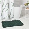 This Everyday Checked Cushion Bath Rug from Room Essentials™ gives your bath decor a spa-like touch. This dark green bathmat is crafted from microfiber fabric with a checked cushion texture to provide a comfortable surface underfoot as you step out of the bath or shower. Its non-skid backing helps keep it in place, and the machine-washable design allows for easy cleaning.
