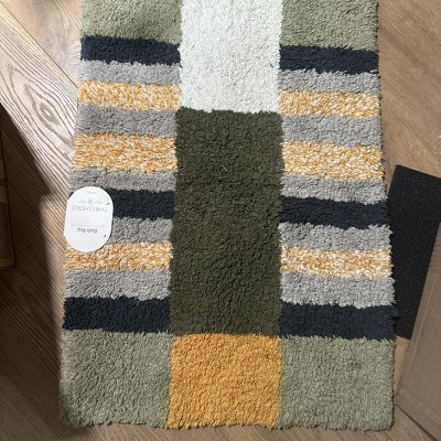 Step out of the shower and into luxurious comfort with this Modern Colorblock Tufted Bath Rug from Threshold™. The tufted bath rug is crafted from cotton fabric to provide soft underfoot comfort as you step out of the bath or shower. Designed with a classic colorblock pattern, you can place it by the tub or in front of the sink to bring style and convenient comfort to your space.