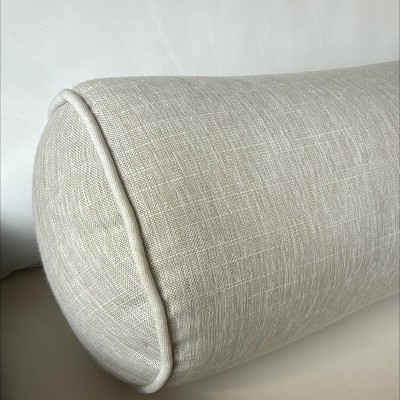 20"x8" Solid Cylinder Outdoor Bolster Pillow with Contrast Piping Tan - Threshold™ designed with Studio McGee