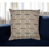 - Modern style square accent throw pillow with handwoven finishing technique and beige color.