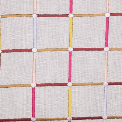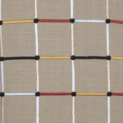 20" Beige Check Cotton Blend Throw Pillow With Embroidery