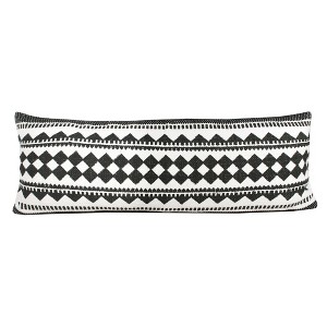 Bring a bit of fashion and zip to your space with this eye-catching and comfy 14" x 36" black and white 100% cotton geometric zippered pillow. Soft and textural black and white 100% cotton has been used to make this pillow look and feel like a real treasure. Great to use on its own or mix with other decorations for the perfect look. A great decorative accessory for your favorite chair, to accent your sofa, or to use as part of your bed ensemble. 14" H x 14" W x 36" D