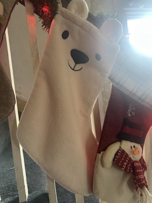 This Character Christmas Stocking from Wondershop™ adds an adorable touch to your holiday setup. Designed in white, this Christmas stocking features a cute polar bear face on the front. Ideally sized for holding a variety of candies, sweet treats, small gifts and more, the stocking comes with an attached loop for easy hanging above your fireplace mantel to prep for Christmas morning.