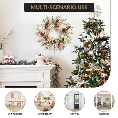 Specification Product Name: Wreath Size: 20"D x 20"W x 4.72"H Weight: 1.74 lbs Color: Black Main Material: PVC Occasions: Indoor Outdoor Window Wall Decor Product Care Instructions: Wipe Clean Assembly Required: No