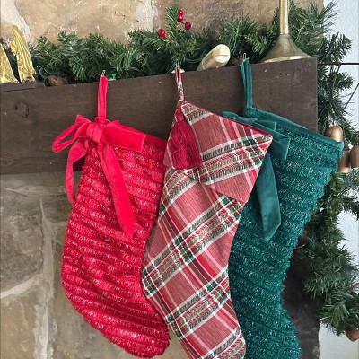 20" Red HGTV Home Collection Cotton Biased Cut Plaid Christmas Stocking - National Tree Company