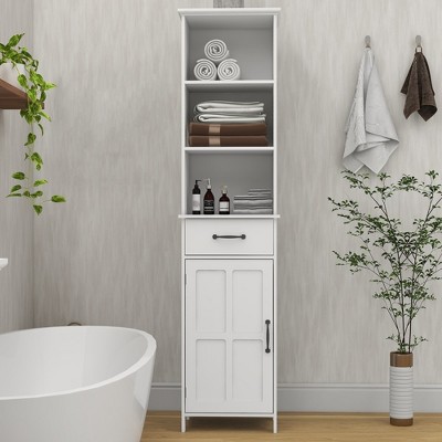 - 【Storage Space】 There is a door shelf from right orientation and an adjustable shelf in the cabinet. You can place small toiletries on the two-tier door shelf and different sizes of items into the cabinet to keep them away from dust.