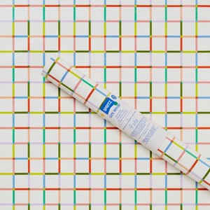 A: The gift wrap features a stylish grid design that adds elegance to presents.