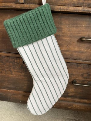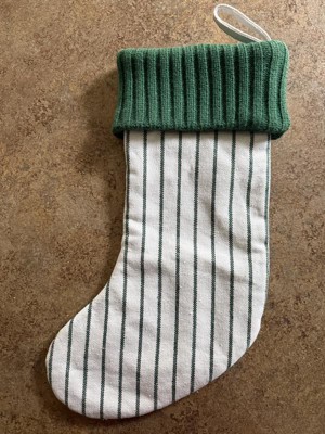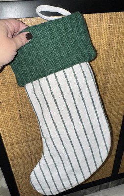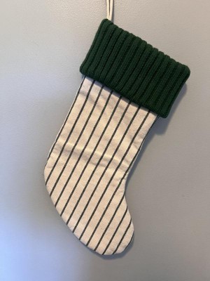 Really beautiful stocking. This stocking is super classic looking with the green and white striped design. It could fit in with a lot of different design aesthetics. It could easily serve as just decor, but the opening is plenty wide enough to serve as a functional stocking as well. Very well made and pretty!