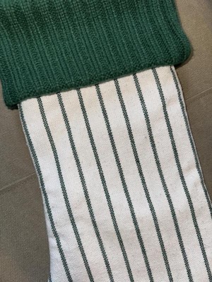 This stocking is super well made and has the perfect classic green stripe! I love how it looks! The green cuff is a good Christmas green and the lining inside seems very thick and capable of holding all the usual stocking treasures. This is a timeless classic!
