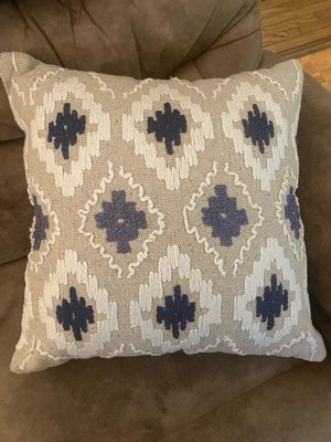[This review was collected as part of a promotion.] First off I really like the design of this decorative pillow! Really goes will almost anything. The pillow is large and full, its texture is kind of woven so if you are looking for a soft pillow this is not it. However this pillow is still comfortable to lay on. I really appreciate that it is made out of recycled materials!!