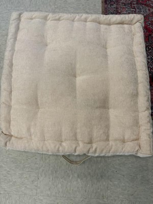 [This review was collected as part of a promotion.] Soft and comfortable Poly Chenille Square Floor Pillow Cushion. This cushion is perfect for meditating on or if needed a cop a squat like the old days. Mine is a soft gray color and luster from fabric nature. It has a tufted detailing with a scalloped edge design. It can easily be spot cleaned with a mild detergent. It's 100% polyester filling and chenille covered. It's also OEKO-TEX certified which means chemical free. 20in. W X 20in. L X 5in. H