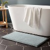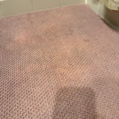A: The bath rug is made of 100% cotton and memory foam.