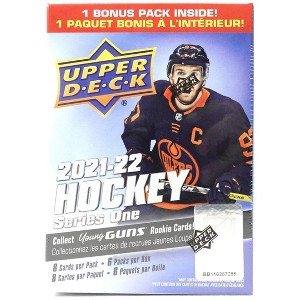This blaster box contains 6 packs of the 2021-22 Upper Deck Series 1 Hockey cards, providing collectors with a fun way to collect cards from the latest hockey series.