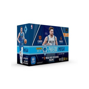 Panini presents the 2023-24 NBA Phoenix Basketball Trading Card Mega Box. Each box contains 6 packs with 10 cards per pack. Look for Mega Box Exclusive Prizms! Look for Autographs from some of the Game's Top Players! Look for Retail Exclusive Ultra-Rare Genies and Metropolis Inserts! Collect them all! Content may vary.