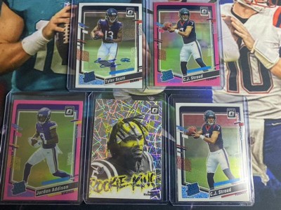Panini presents the 2023 NFL Donruss Optics Football Trading Card Blaster Box! Each box contains 6 packs with 4 cards per pack. Look for Blaster Exclusive Rated Rookie Pink Parallels! Look for Autographs and Memorabilia cards from some of the NFL's hottest players! Look for Ultra-Rare Inserts including Downtown, Mythical, Blazers and More!