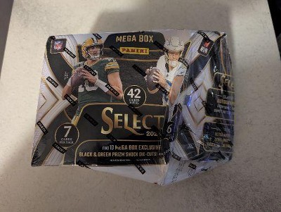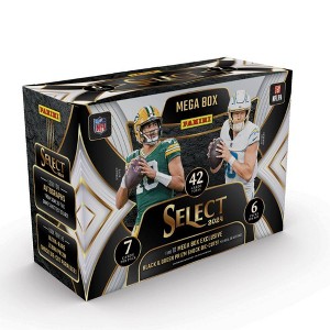 Panini presents the 2024 NFL Select Football Trading Card Mega Box. Each box contains 6 packs with 7 cards per pack. Look for Mega Box Exclusive Black & Green Prizm Shock Die Cuts! Look for Autographs from some of the Game's Hottest Stars! Look for Ultra-Rare Zebra Prizm Shock Die-Cut Parallel! Content may vary.