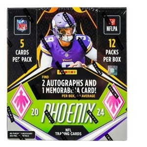 This hobby box includes 2024 Panini Phoenix football cards. It features rookies and veterans.