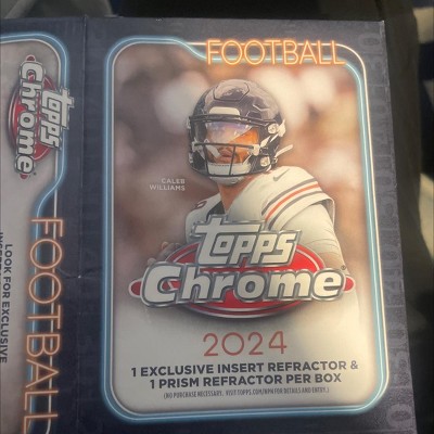 Topps presents the 2024 NFL Chrome Football Trading Card Value Pack. Each box contains 20 cards. Look for Exclusive Insert Lazer Parallels. Look for an Exclusive Insert Refractor and a Prism Refractor. Look for Highly Limited Inserts such as Dazzling Debuts and Urban Legends. Look for 1974 Topps Football, Future Stars, Youthquake, Finesse, Legends of the Gridiron, and Many More! Content may vary. Cards in images not guaranteed.