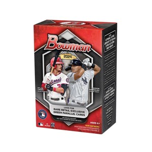 Topps presents the 2024 MLB Bowman Baseball Trading Card Value Box. The first place to find the game's future stars! Each box contains 6 packs with 12 cards per pack. 72 cards per box! Look for Rare Retail Exclusive Green Parallel Cards! Chase Extremely Limited Legendary Bowman Cards and Hidden Gems Inserts. Look for Super Limited Autograph Versions or Select Inserts!