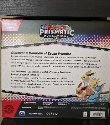 Discover a Rainbow of Eevee Friends! Eevee’s three Evolutions originally discovered in the Kanto region are beloved by Pokémon Trainers across the land, and now you can add them to your own collection as foil promo cards! You’ll also get a poster featuring the special Scarlet & Violet—Prismatic Evolutions expansion, along with three booster packs to open. The only question is which cards you’ll find inside them!