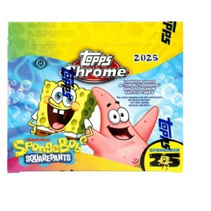 This hobby box celebrates 25 years of SpongeBob with Topps Chrome cards. It includes themed inserts and parallels.