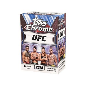 Topps presents the 2025 UFC Chrome Fighting Trading Card Value Box. Each box contains 6 packs with 4 cards per pack. Look for Exclusive Sepia Parallels! Content may vary. Collect them all.