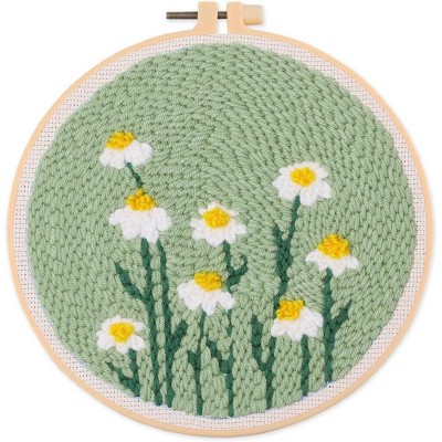 20cm/7.9in Punch Needle Embroidery Starter Kits for Beginners with Embroidery Hoops, Punch Needle Fabric with Pattern, Cartoon Cat and Green Plant #1