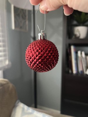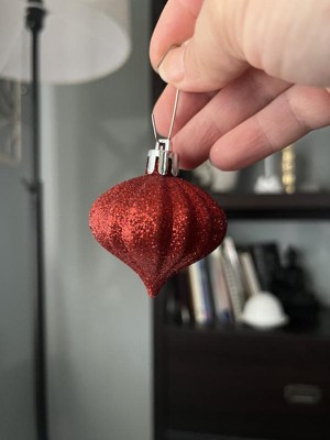 A: The ornament set features vibrant red and white colors, perfect for festive decor.