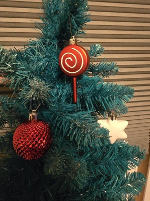 A: The set includes a variety of ornaments such as balls, candies, stars, and lollipops.