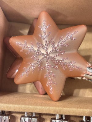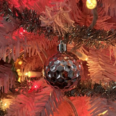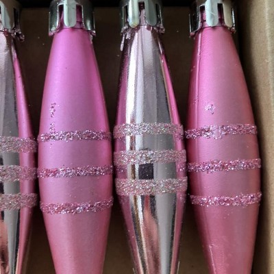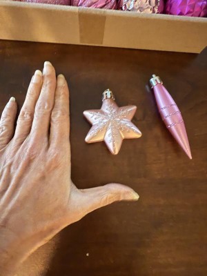 A: The ornaments come in assorted shades of pink, adding a charming touch to your decor.