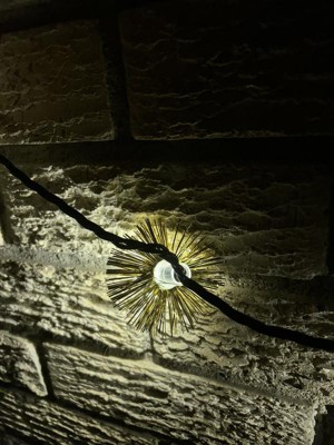 This lighting had potential, but fell short due to durability. All lights are intact and have a nice, even warm tone. The tinsels and starburst shape gives a nostalgic look that I love. Unfortunately, the tinsels didn't fare well in the packaging; many were bent or broken. Also, the plastic, light caps easily pop off.